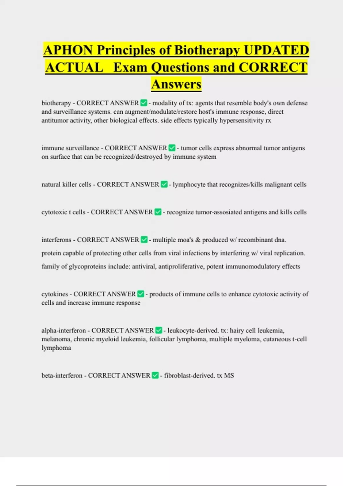 alpha-interferon - CORRECT ANSWER - leukocyte-derived. tx: hairy cell leukemia,