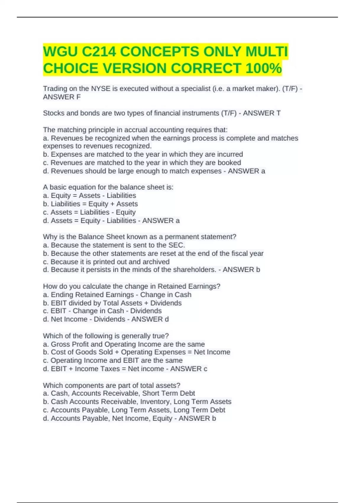 d. EBIT + Income Taxes = Net income - ANSWER c
