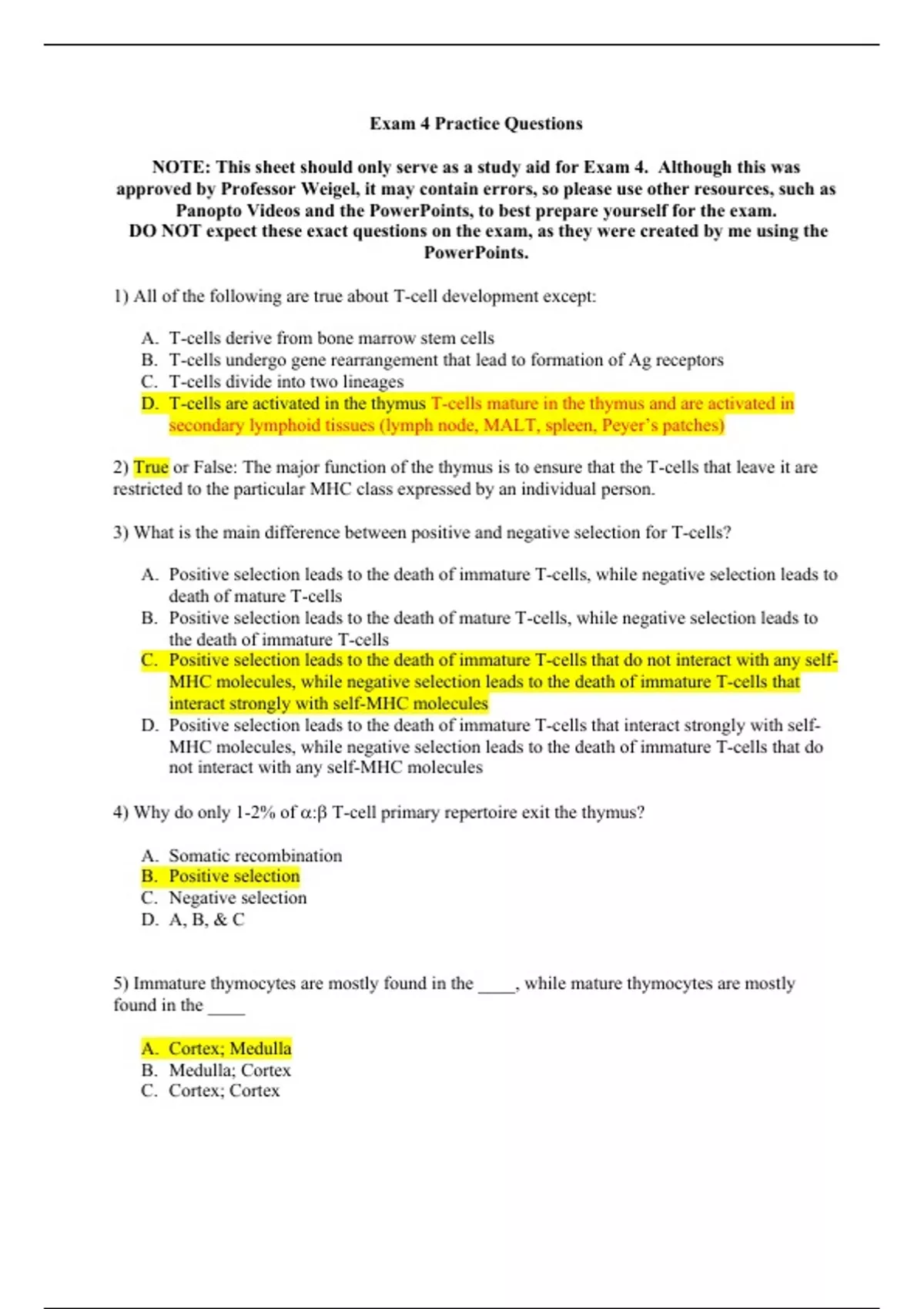approved by Professor Weigel, it may contain errors, so please use other resources, such as