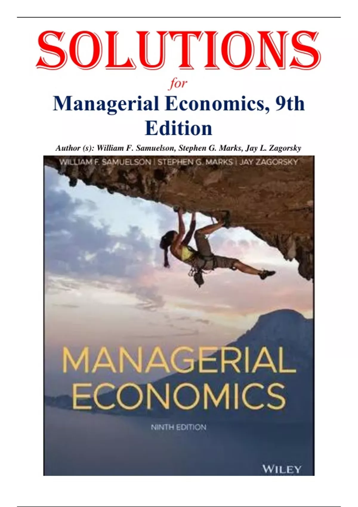 Complete Solutions Manual for Managerial Economics 9e 9th Edition by William F. Samuelson, Jay L. Zagorsky, Stephen G. Marks. Full Chapters problems are included (Chapter 1 to 18) 1 Introduction To Economic Decision Making 2 Optimal Decisions Using Marginal Analysis 3 Demand Analysis and Optimal Pricing 4 Estimating and Forecasting Demand 5 Production 6 Cost Analysis 7 Perfect Competition 8 Monopoly 9 Oligopoly 10 Game Theory and Competitive Strategy 11 Regulation, Public Goods, and Benefit-Cost Analysis 12 The Economics of Non-Profit Organizations 13 Decision Making Under Uncertainty 14 The Value of Information 15 Asymmetric Information and Organizational Design 16 Bargaining and Negotiation 17 Linear Programming 18 Auctions and Competitive Bidding (Online Chapter) Included