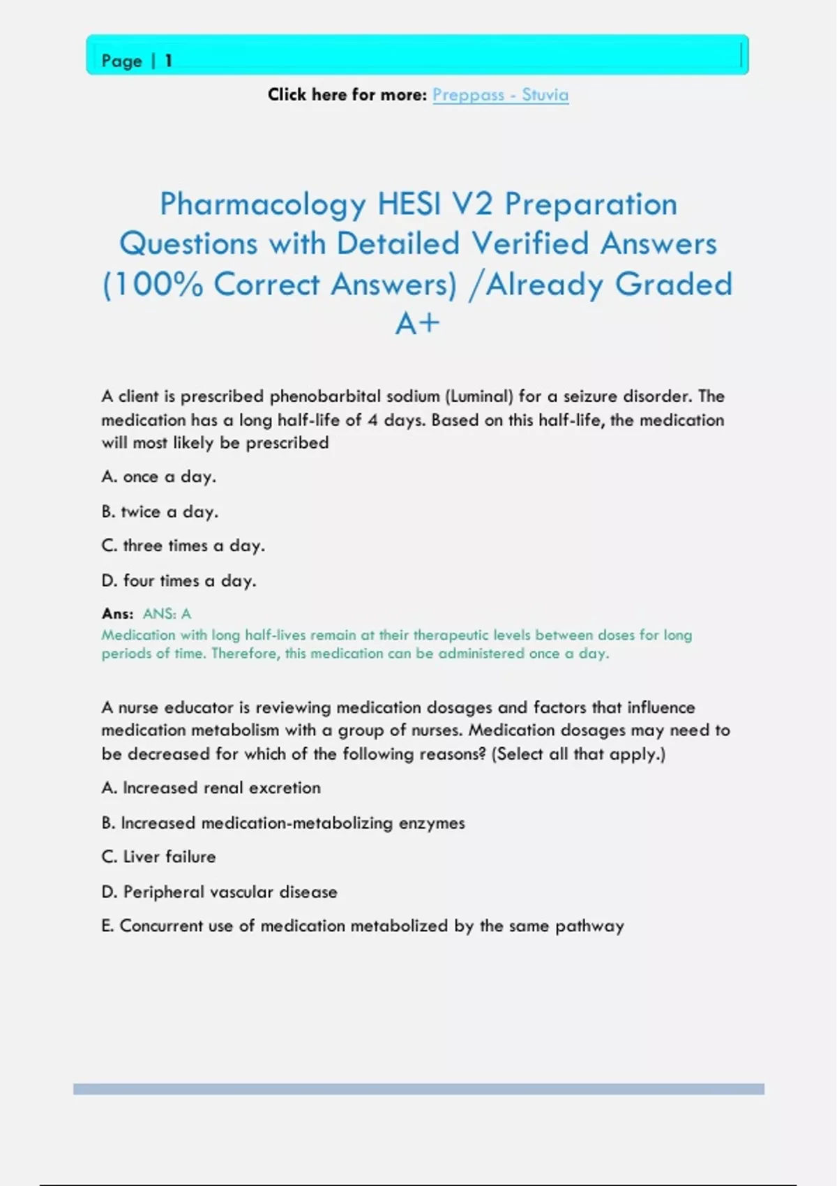 Pharmacology HESI V2 Preparation Questions with Detailed Verified Answers (100% Correct Answers) /Already Graded A+