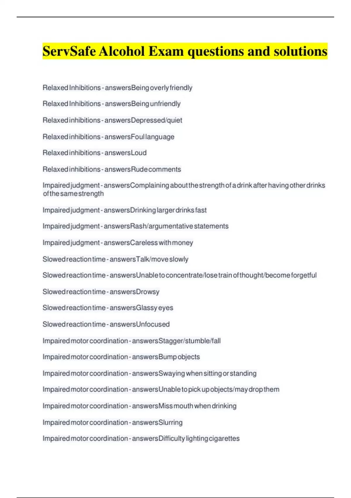 ServSafe Alcohol Exam questions and solutions