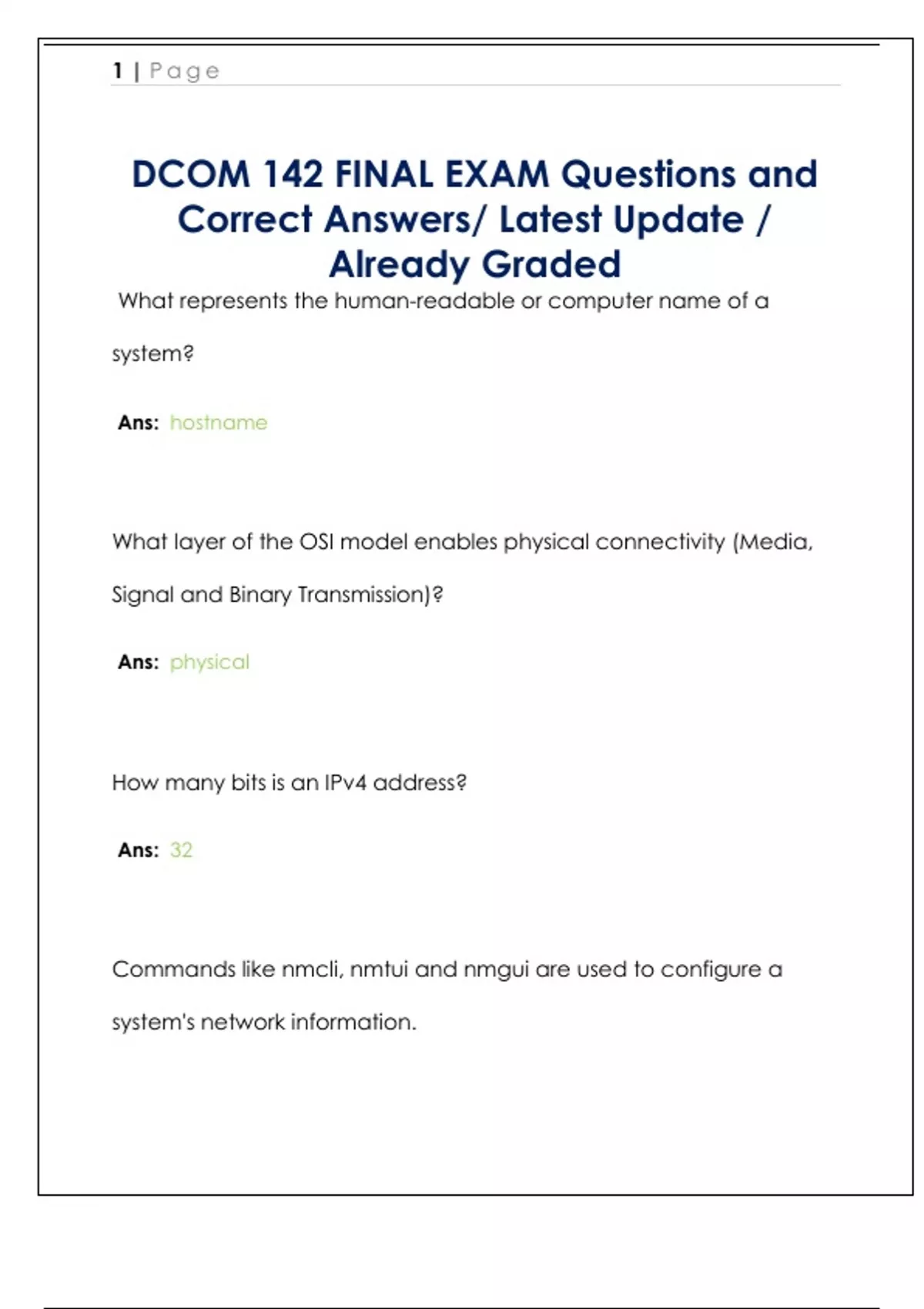 DCOM 142 FINAL Questions and Correct Answers/ Latest Update / Already Gradedt
