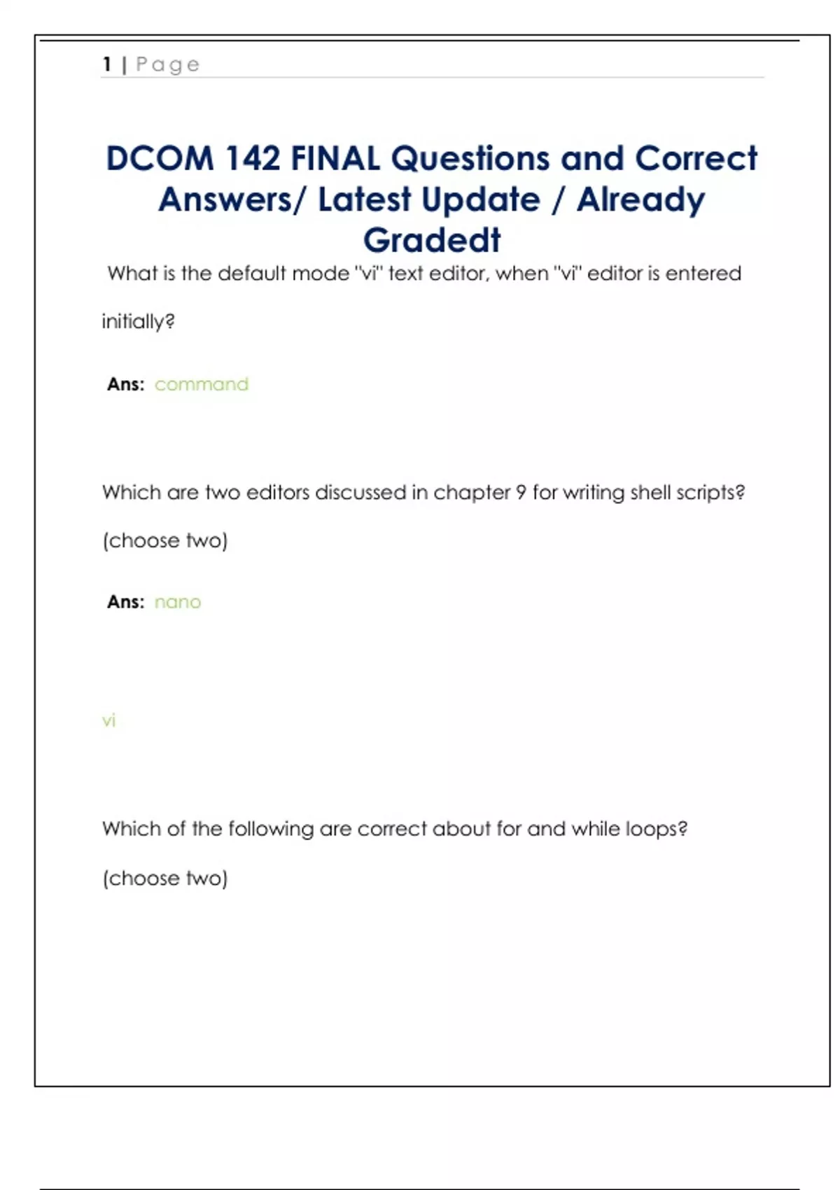 DCOM 142 FINAL Questions and Correct