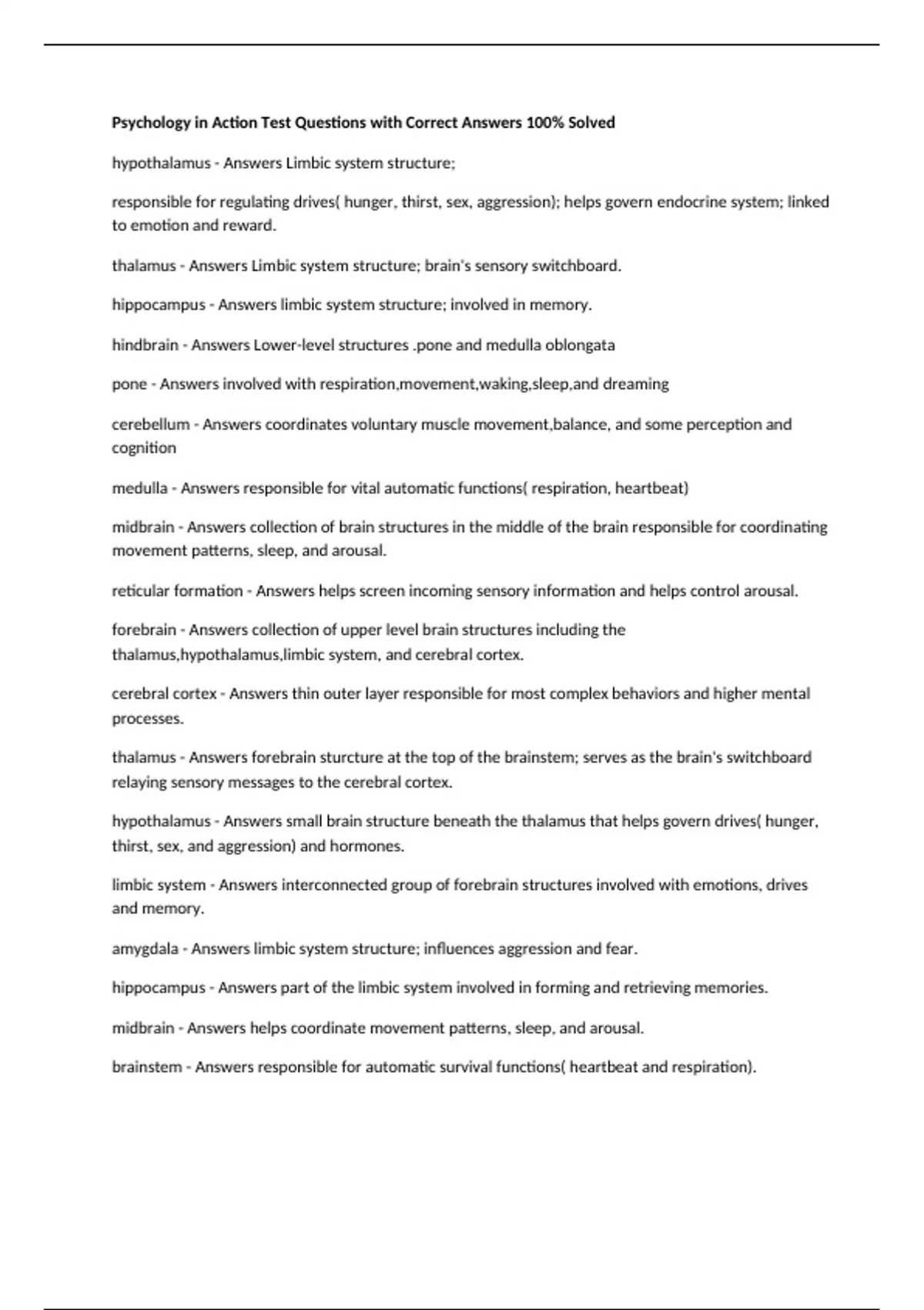 hindbrain - Answers Lower-level structures .pone and medulla oblongata