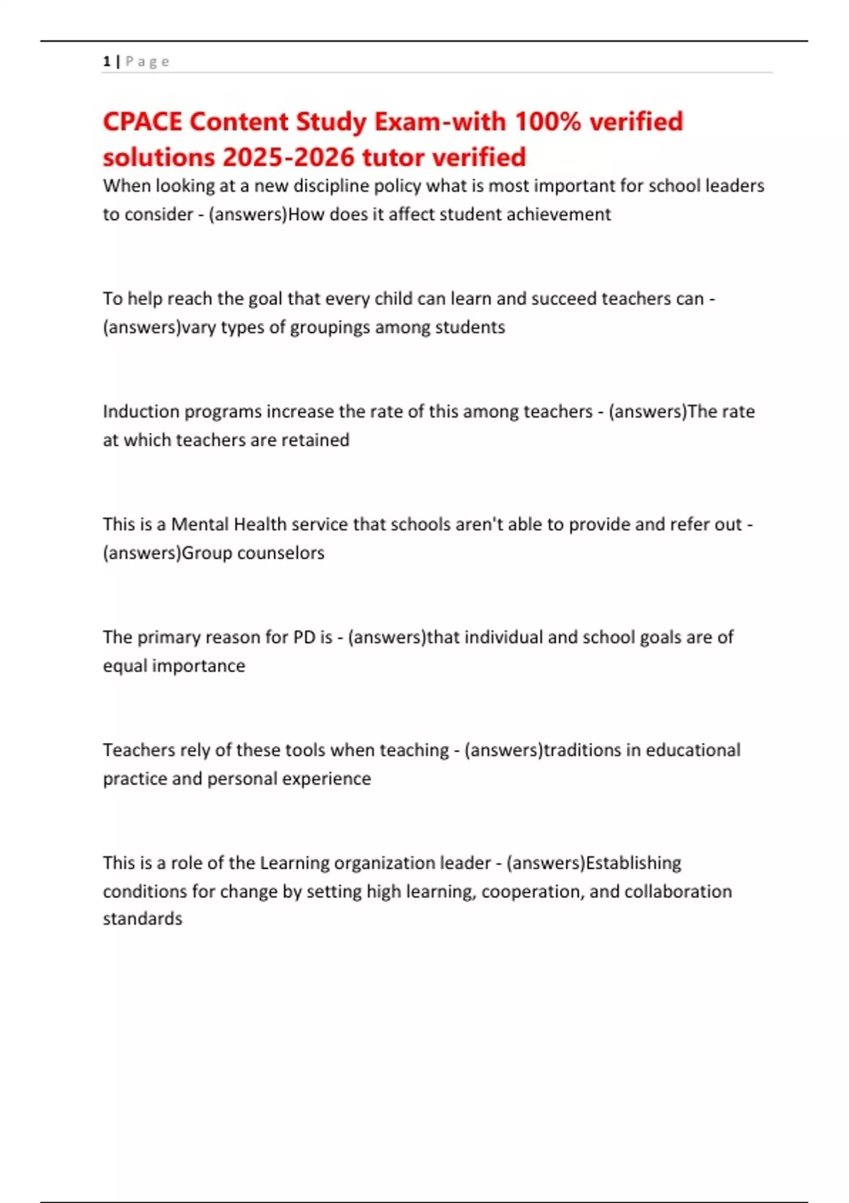 CPACE Content Study Exam-with 100% verified solutions tutor verified