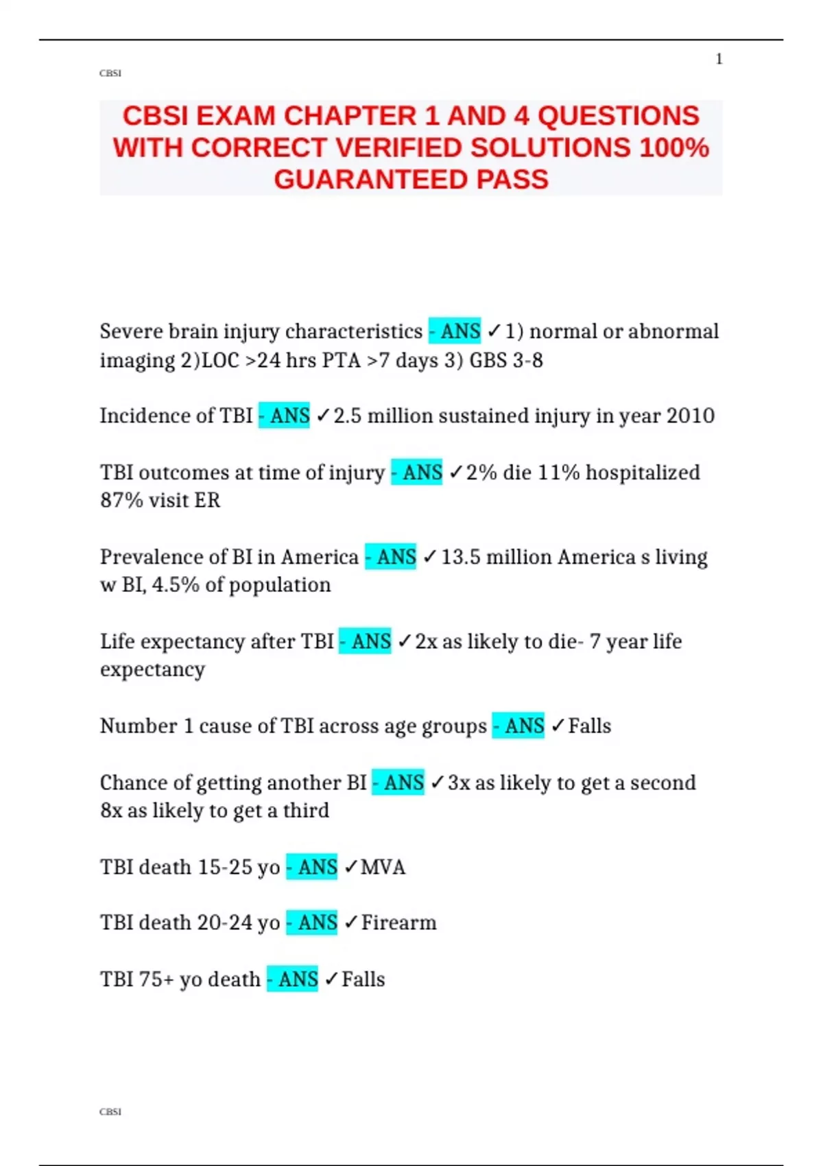 Number 1 cause of TBI across age groups - ANS ✓Falls