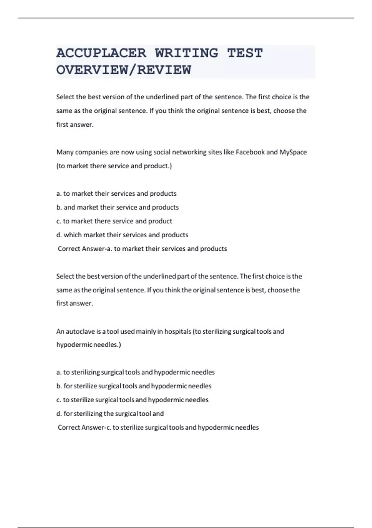 Prepare for the ACCUPLACER Writing Test with this comprehensive overview and review guide. Designed to help students understand the test's format, key topics, and strategies for success, this guide breaks down essential writing skills, including grammar, punctuation, sentence structure, and paragraph organization. With a focus on improving clarity, coherence, and style, this review provides in-depth explanations and sample questions to familiarize you with the test's content. Whether you're retaking the test or tackling it for the first time, this resource will help you approach the ACCUPLACER Writing Test with confidence and increase your chances of achieving a high score. Gain the skills you need for academic success and future writing assessments.