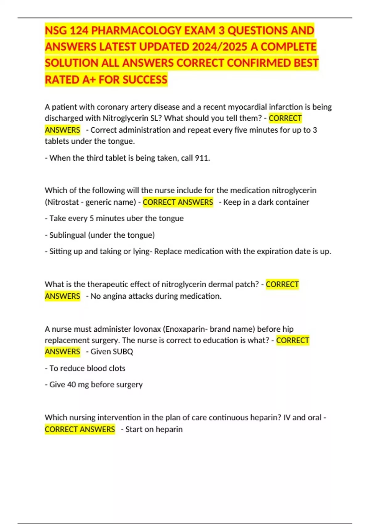 , NSG 124 PHARMACOLOGY EXAM 3 QUESTIONS AND
