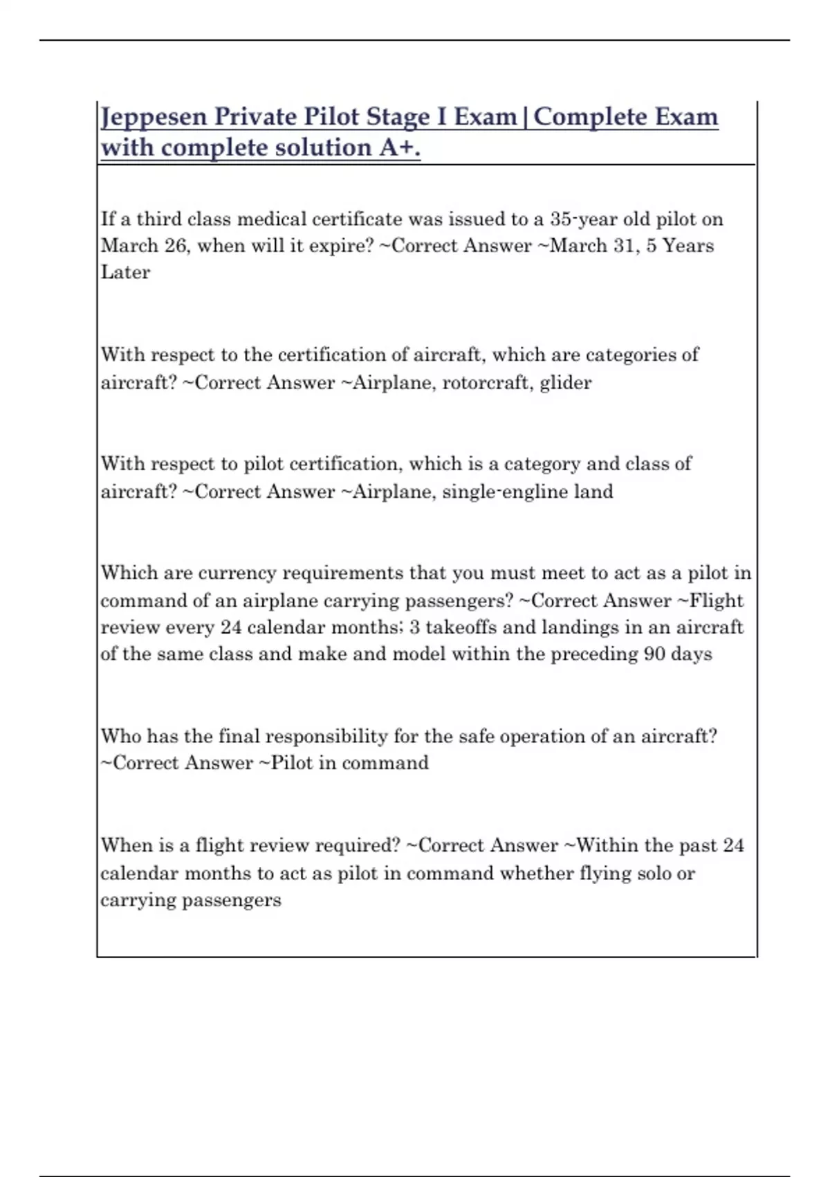 Jeppesen Private Pilot Stage I Exam|Complete Exam with complete solution A+. Jeppesen Private Pilot Stage I Exam|Complete Exam with complete solution A+. Jeppesen Private Pilot Stage I Exam|Complete Exam with complete solution A+. Jeppesen Private Pilot Stage I Exam|Complete Exam with complete solution A+.