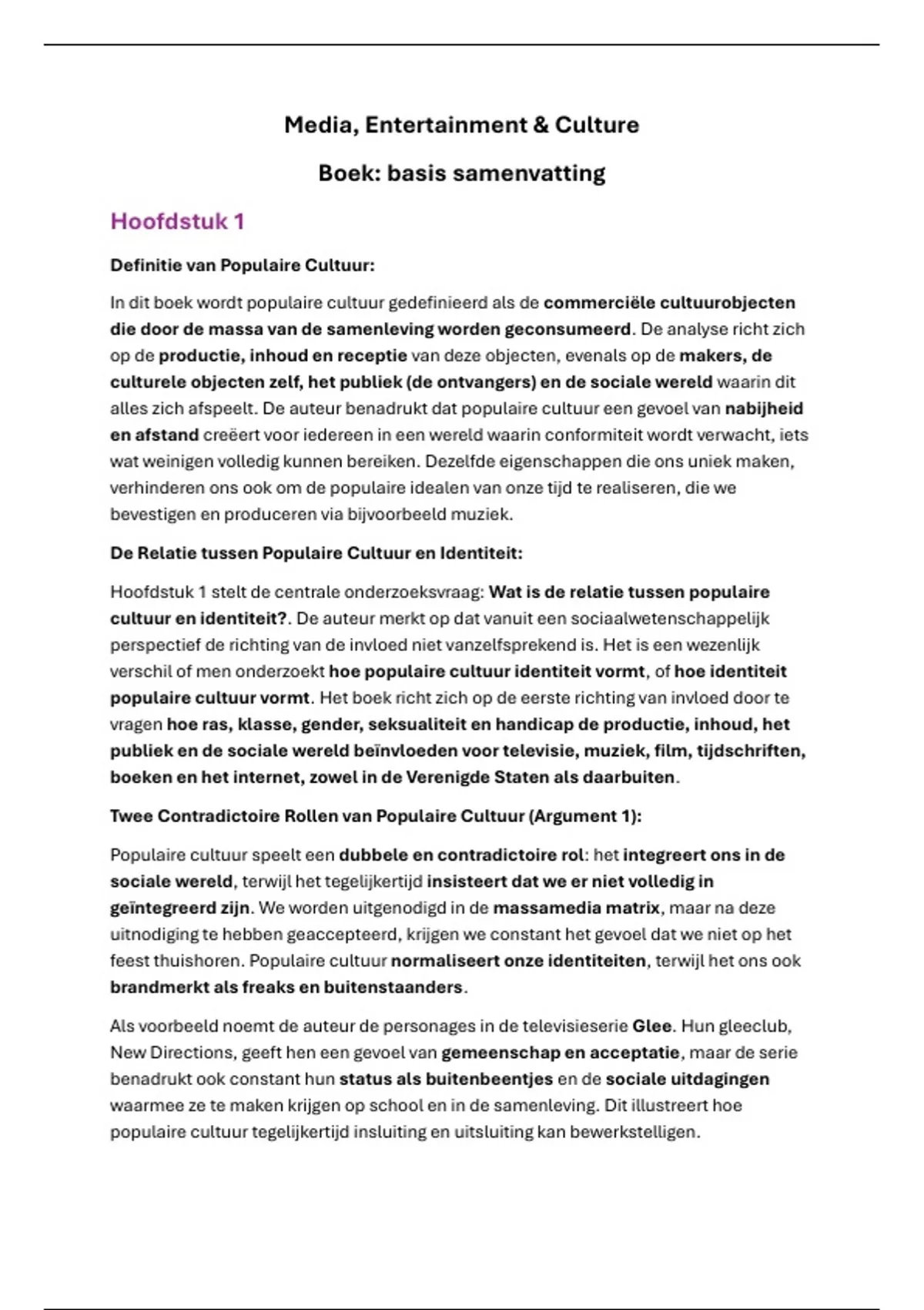 In deze basis samenvatting bespreek ik alle punten uit de benodigde hoofdstukken uit het boek Pop Culture Freaks, van het van Media Entertainment and Culture op een duidelijke manier.