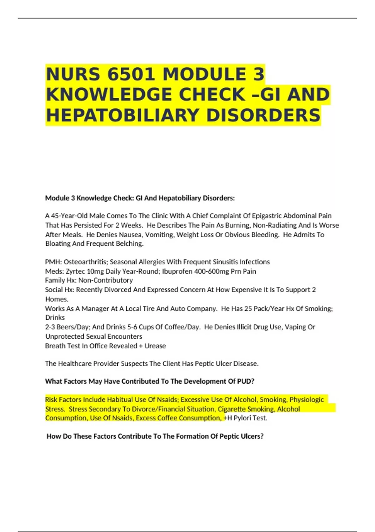 Module 3 Knowledge Check: GI And Hepatobiliary Disorders: