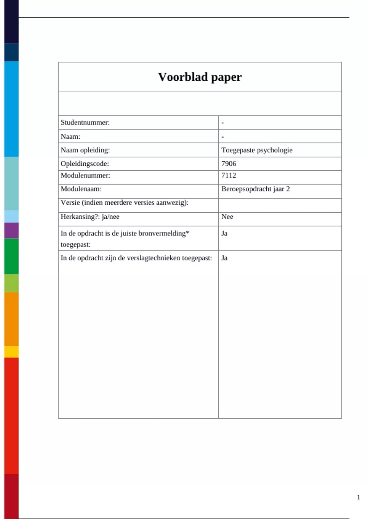 In de opdracht zijn de verslagtechnieken toegepast: Ja