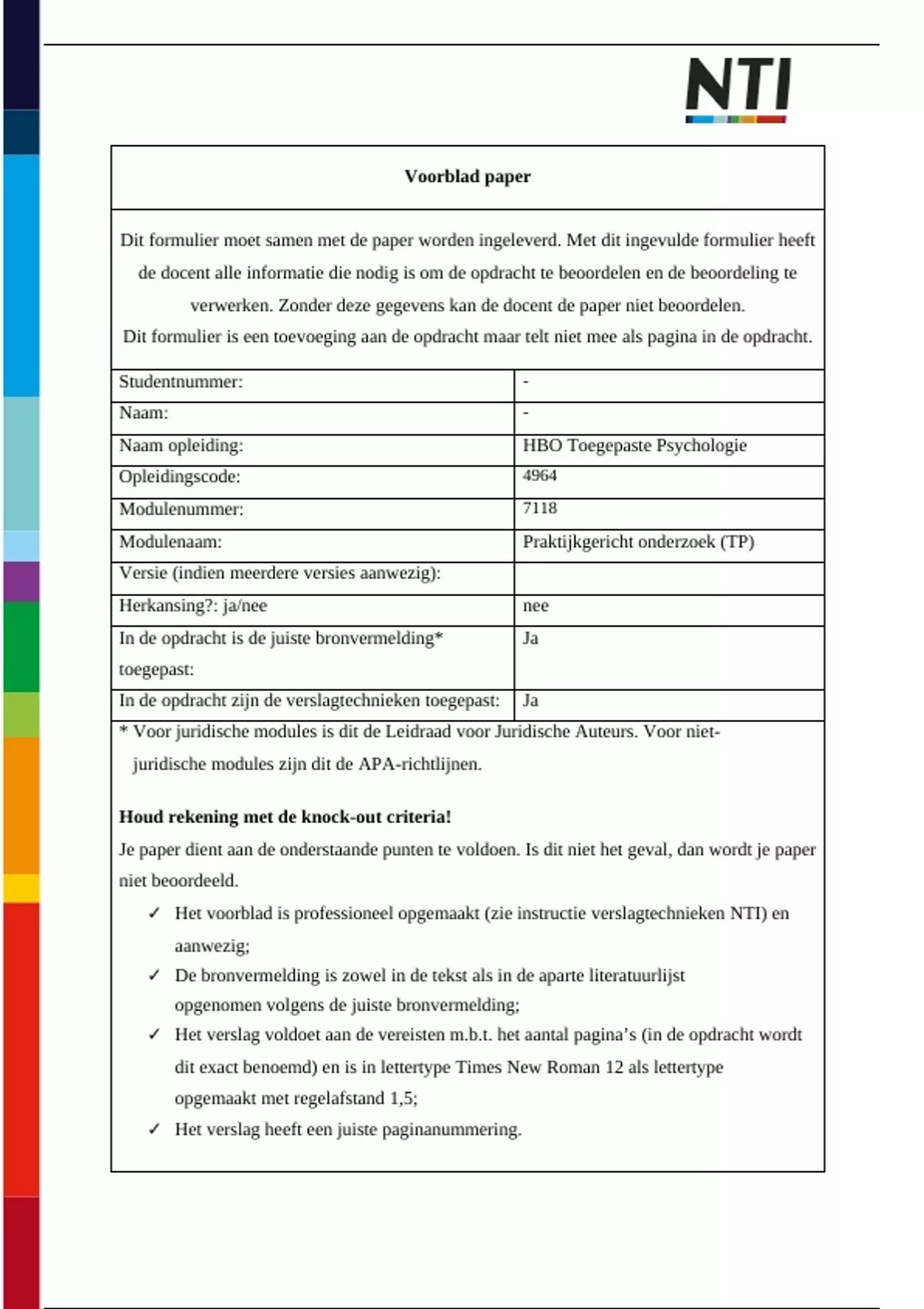 verwerken. Zonder deze gegevens kan de docent de paper niet beoordelen.