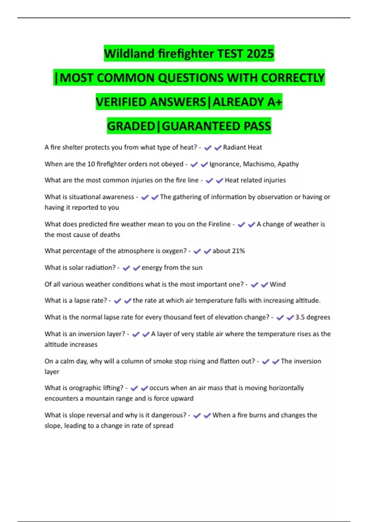 Wildland firefighter TEST 2025 |MOST COMMON QUESTIONS WITH CORRECTLY VERIFIED ANSWERS|ALREADY A+ GRADED|GUARANTEED PASS