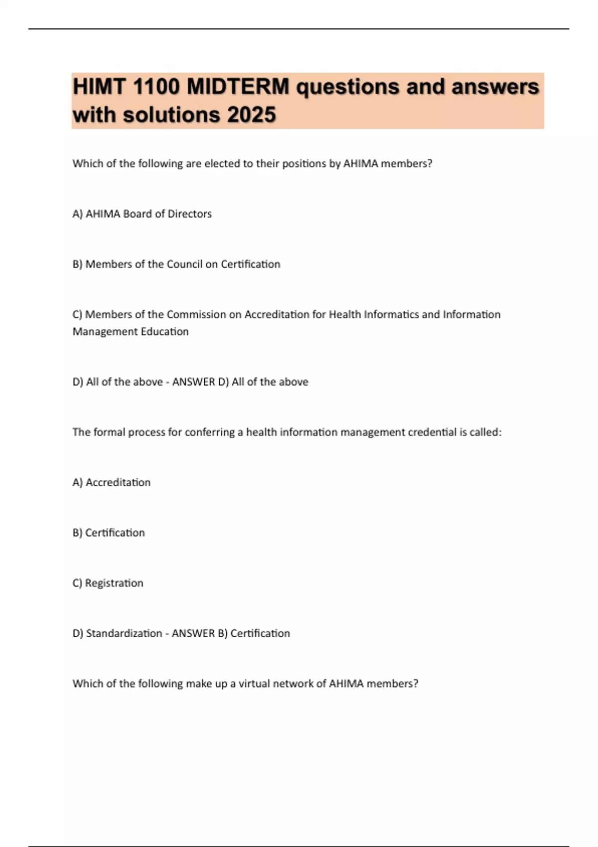 ,A) AHIMA Board of Directors