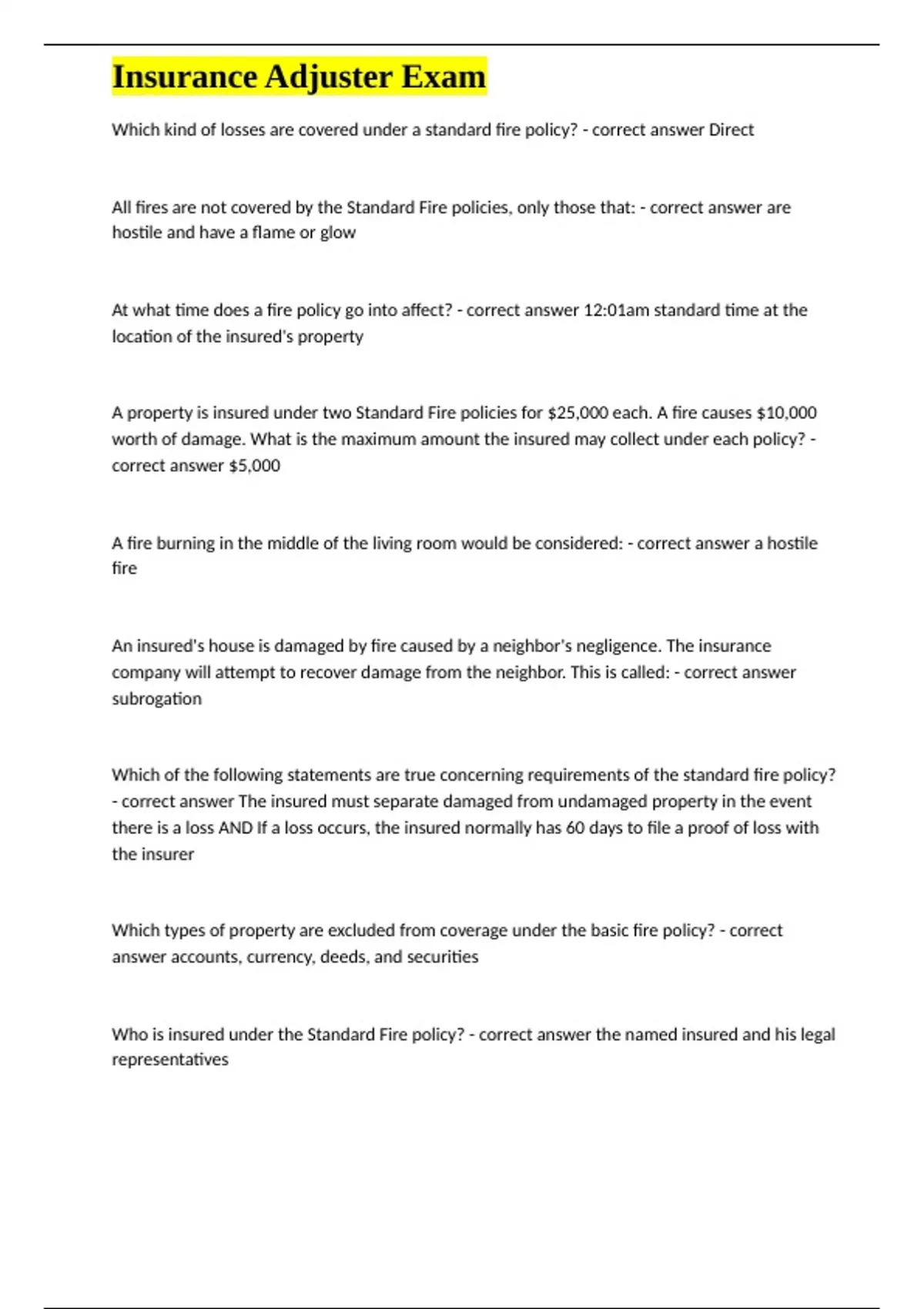 ,Insurance Adjuster Exam