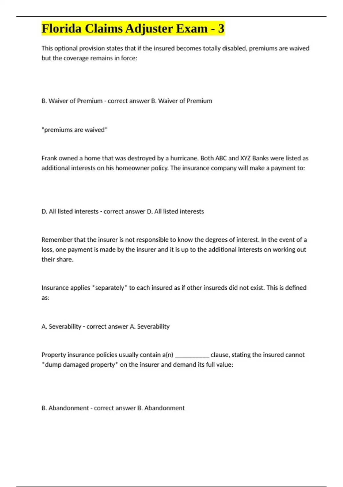 ,Florida Claims Adjuster Exam - 3