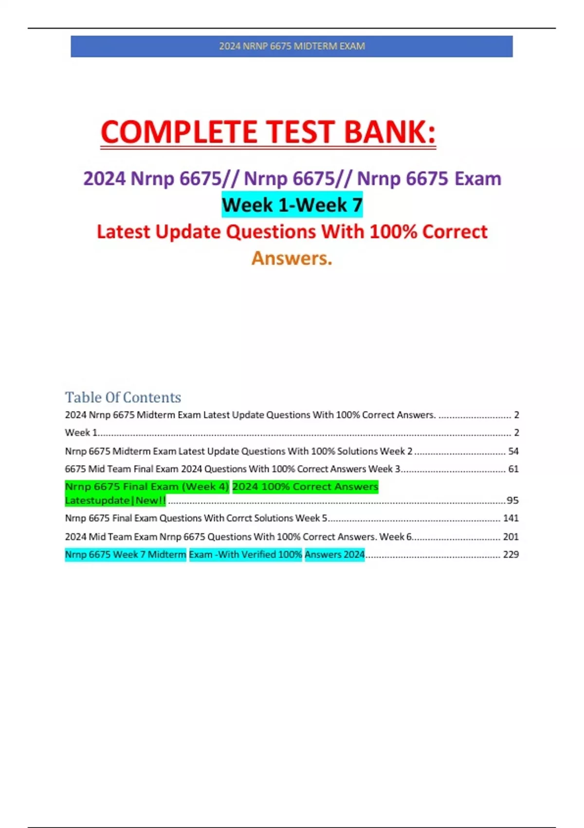 Nrnp 6675 Week 7 Midterm Exam -With Verified 100% Answers 2024 .................................................. 229