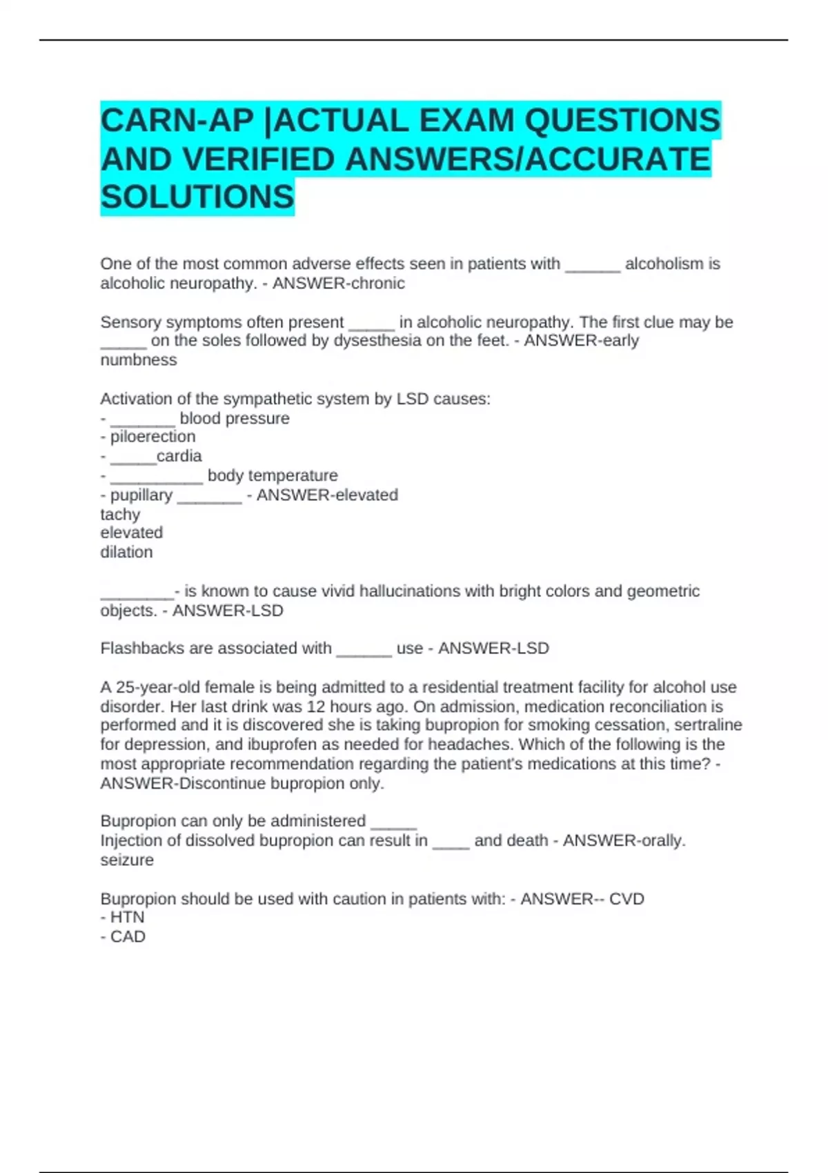 Bupropion should be used with caution in patients with: - ANSWER-- CVD