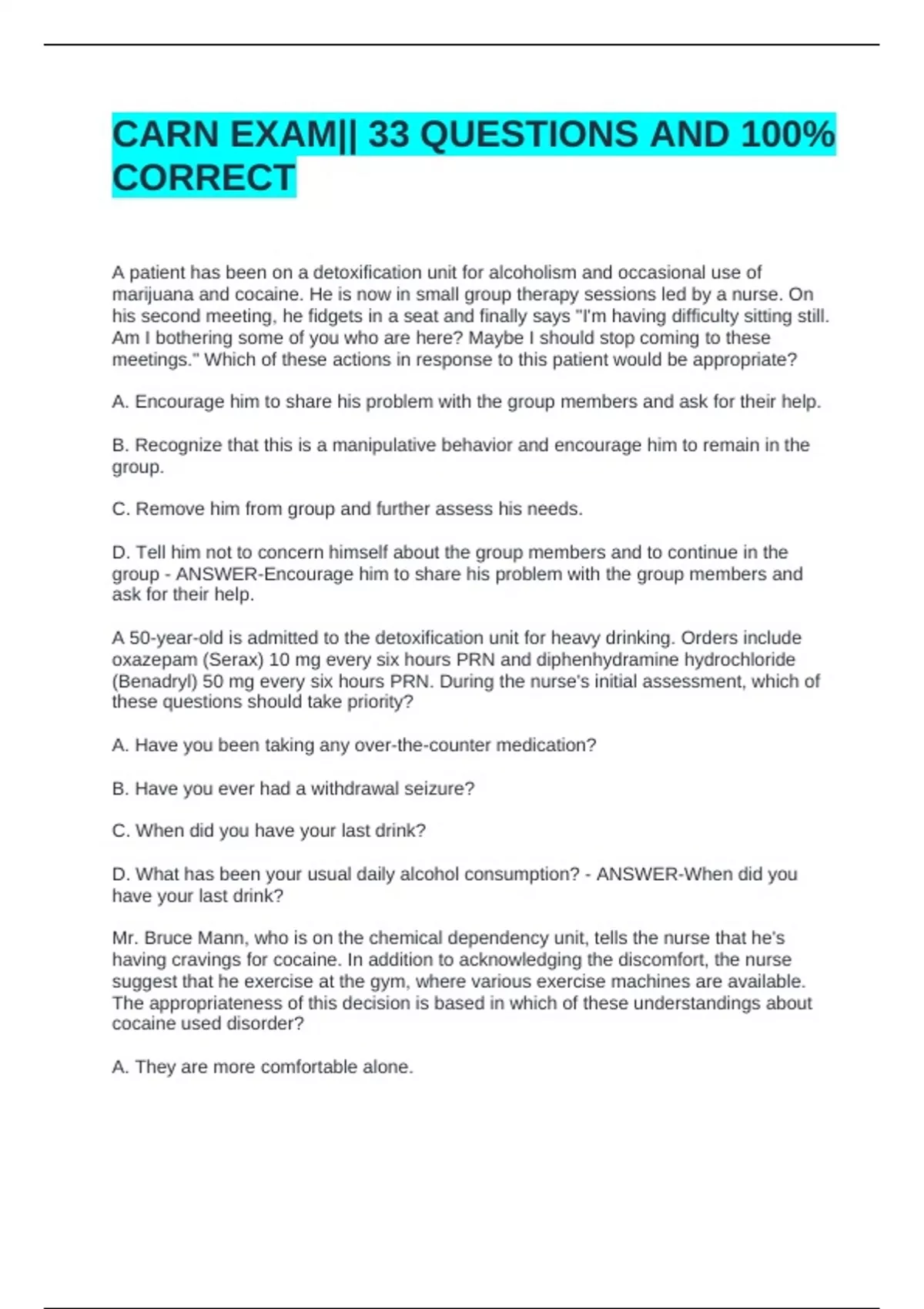 A patient has been on a detoxification unit for alcoholism and occasional use of