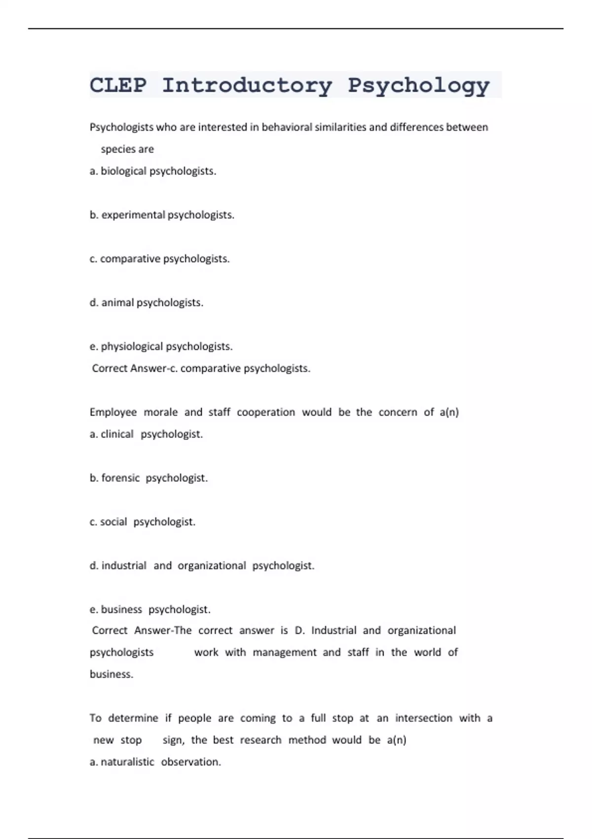 Correct Answer-The correct answer is D. Industrial and organizational