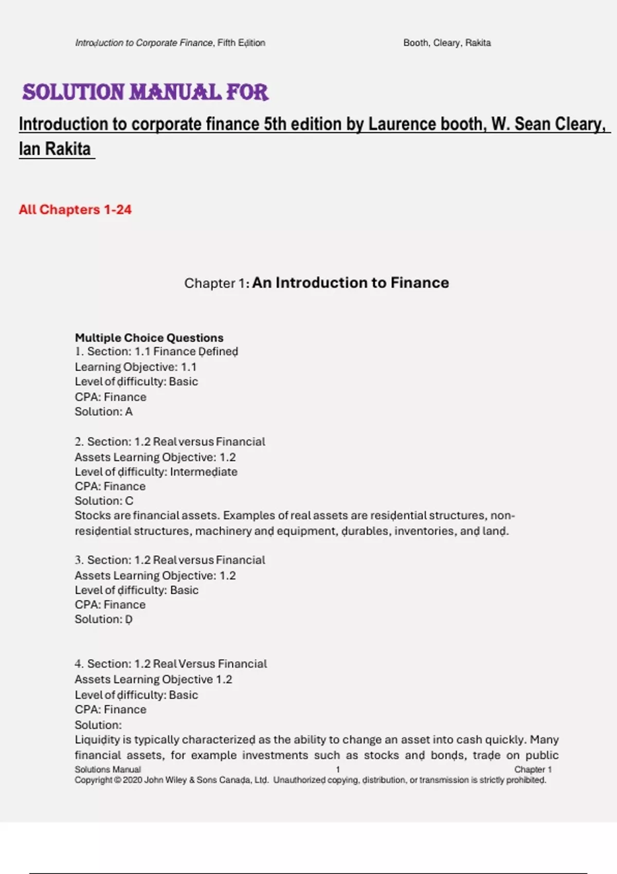 ,Introḍuction to Corporate Finance, Fifth Eḍition Booth, Cleary, Rakita