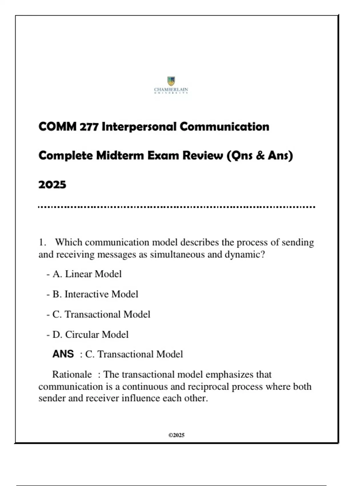 Rationale : The transactional model emphasizes that