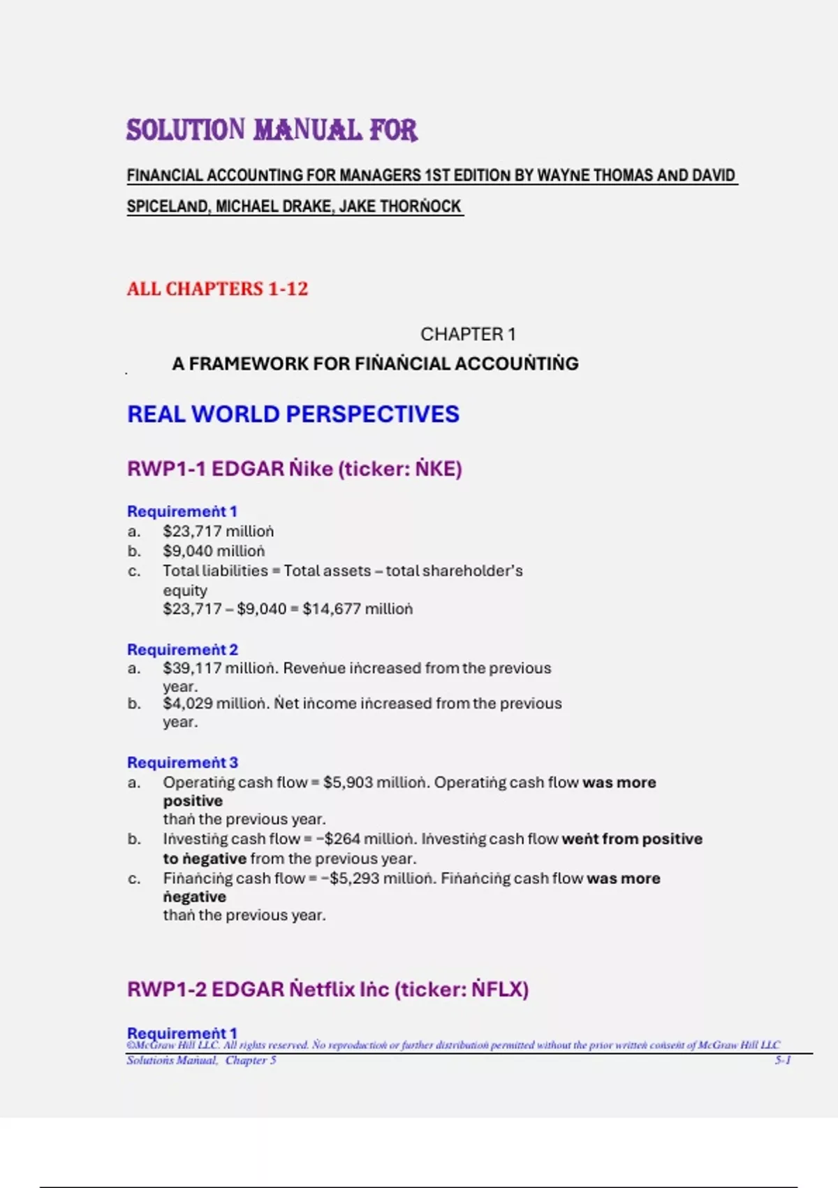 FINANCIAL ACCOUNTING FOR MANAGERS 1ST EDITION BY WAYNE THOMAS AND DAVID