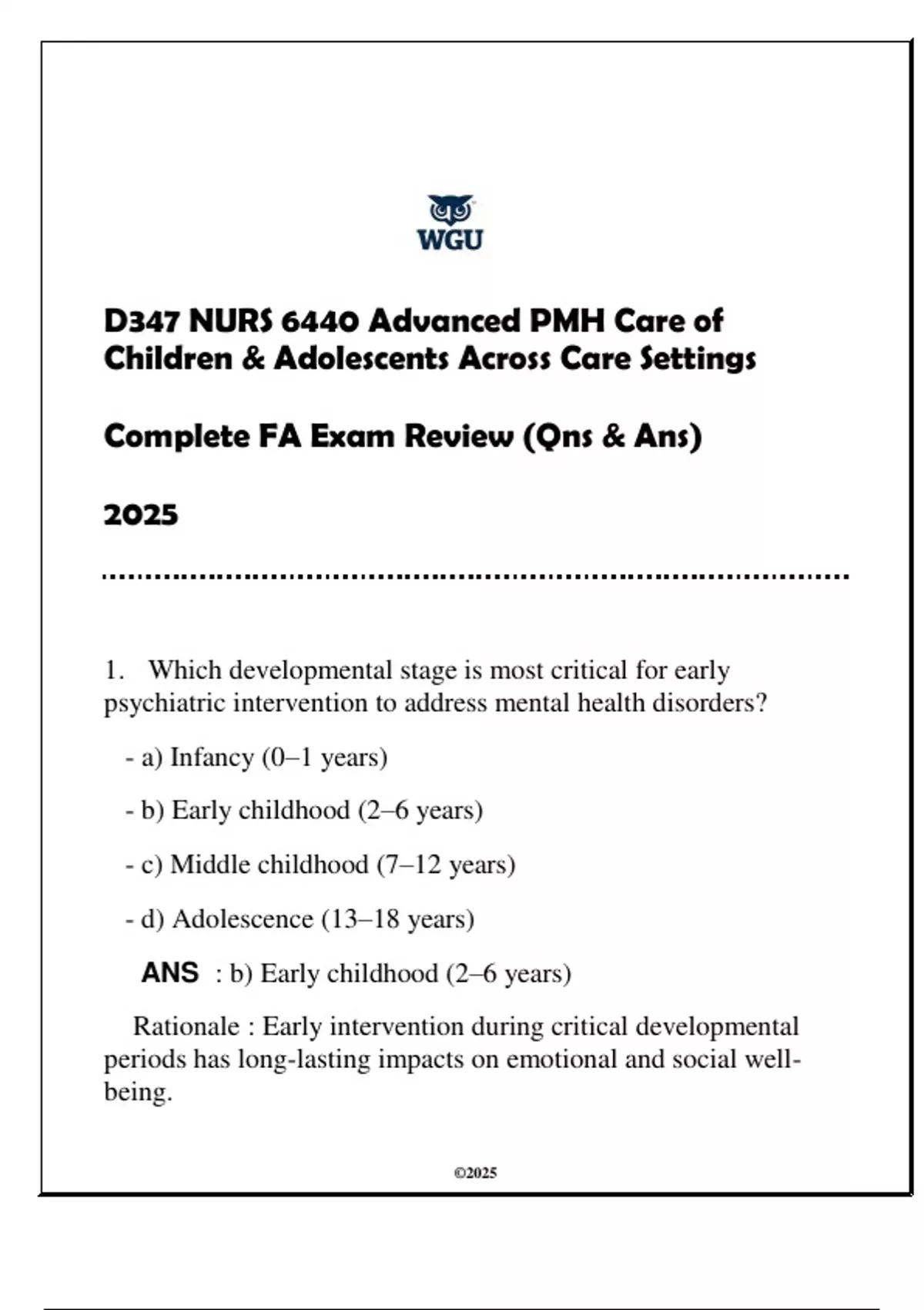 ANS : b) Early childhood (2–6 years)