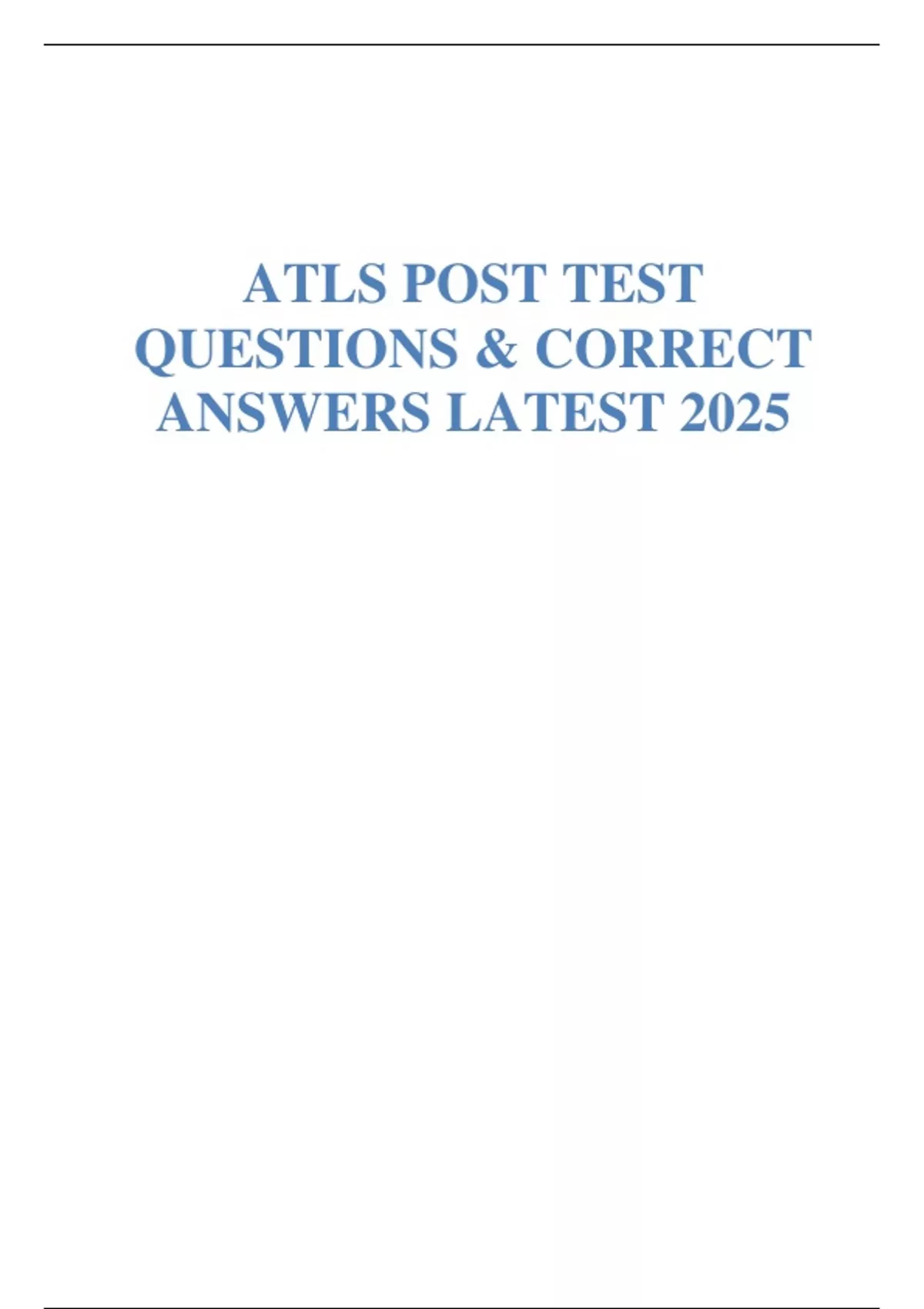 ATLS POST TEST QUESTIONS & CORRECT ANSWERS LATEST 2025