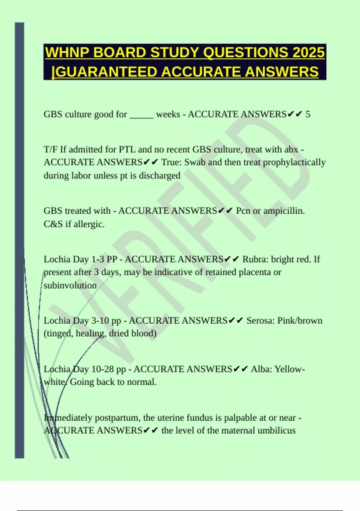Lochia Day 10-28 pp - ACCURATE ANSWERS✔✔ Alba: Yellow-
