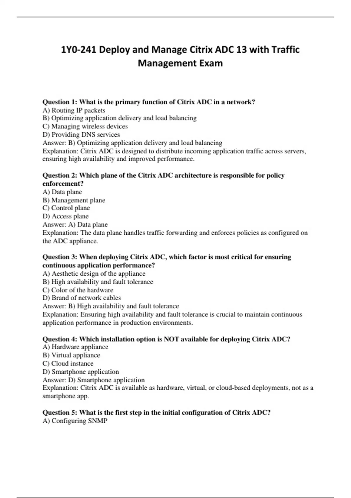 Question 3: When deploying Citrix ADC, which factor is most critical for ensuring