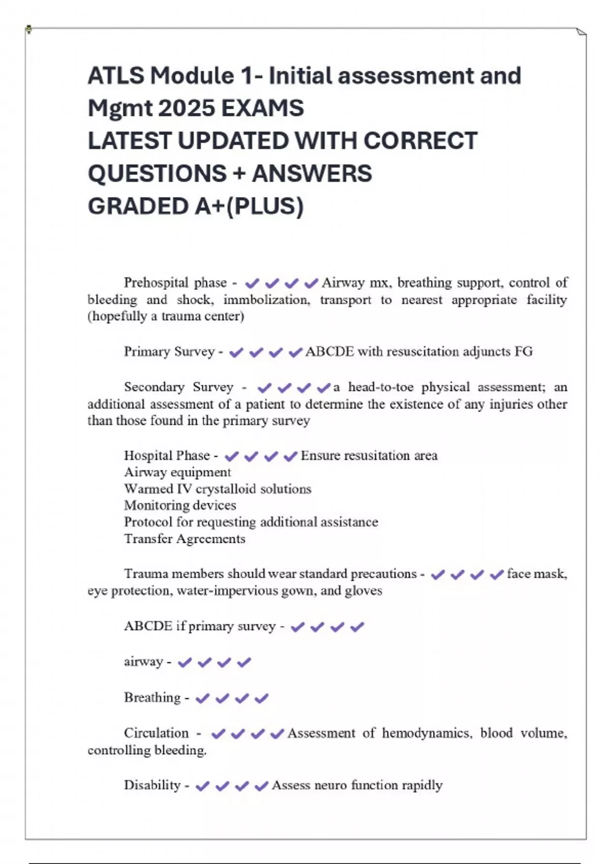 ATLS Module 1- Initial assessment and Mgmt 2025 EXAMS LATEST UPDATED WITH CORRECT QUESTIONS + ANSWERS GRADED A+(PLUS