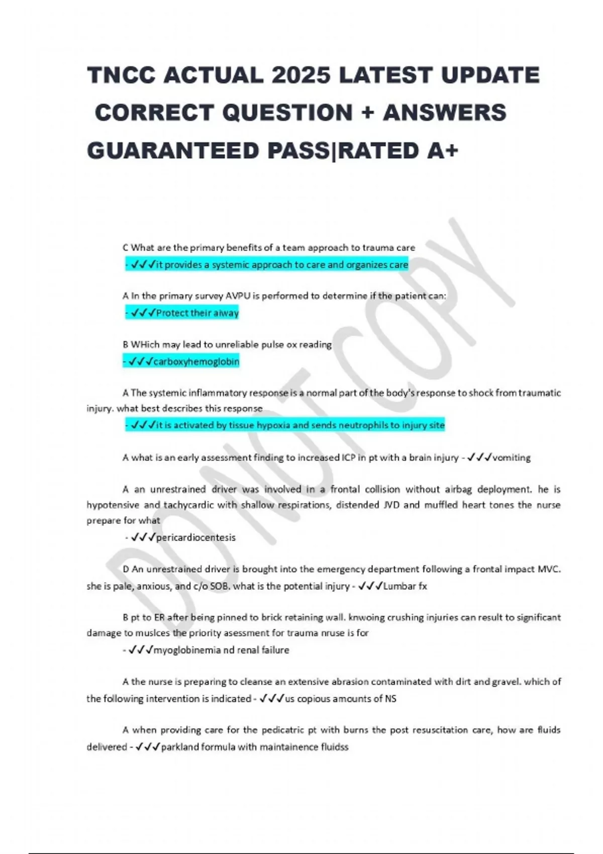 TNCC ACTUAL 2025 LATEST UPDATE CORRECT QUESTION + ANSWERS GUARANTEED PASS|RATED A+