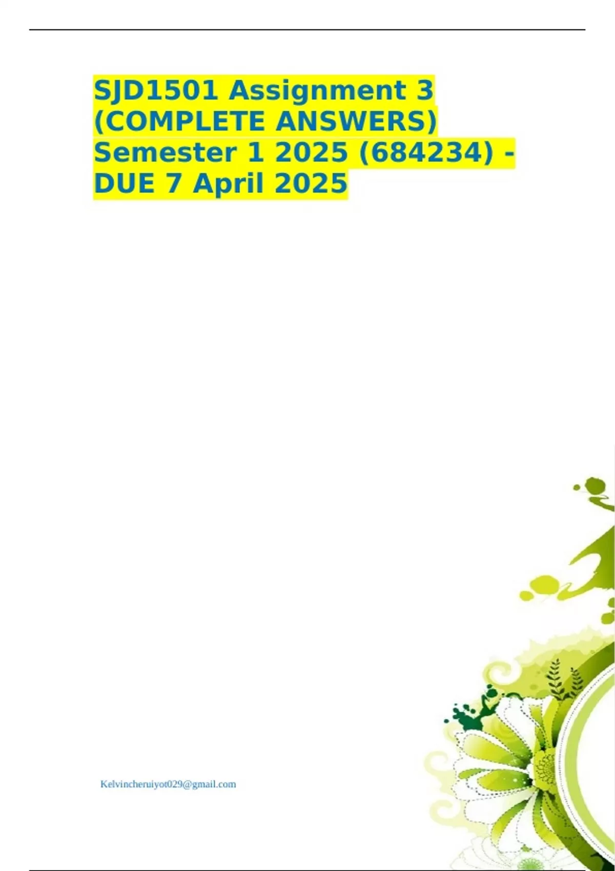 SJD1501 Assignment 3 (COMPLETE ANSWERS) Semester 1 2025 (684234) - DUE 7 April 2025