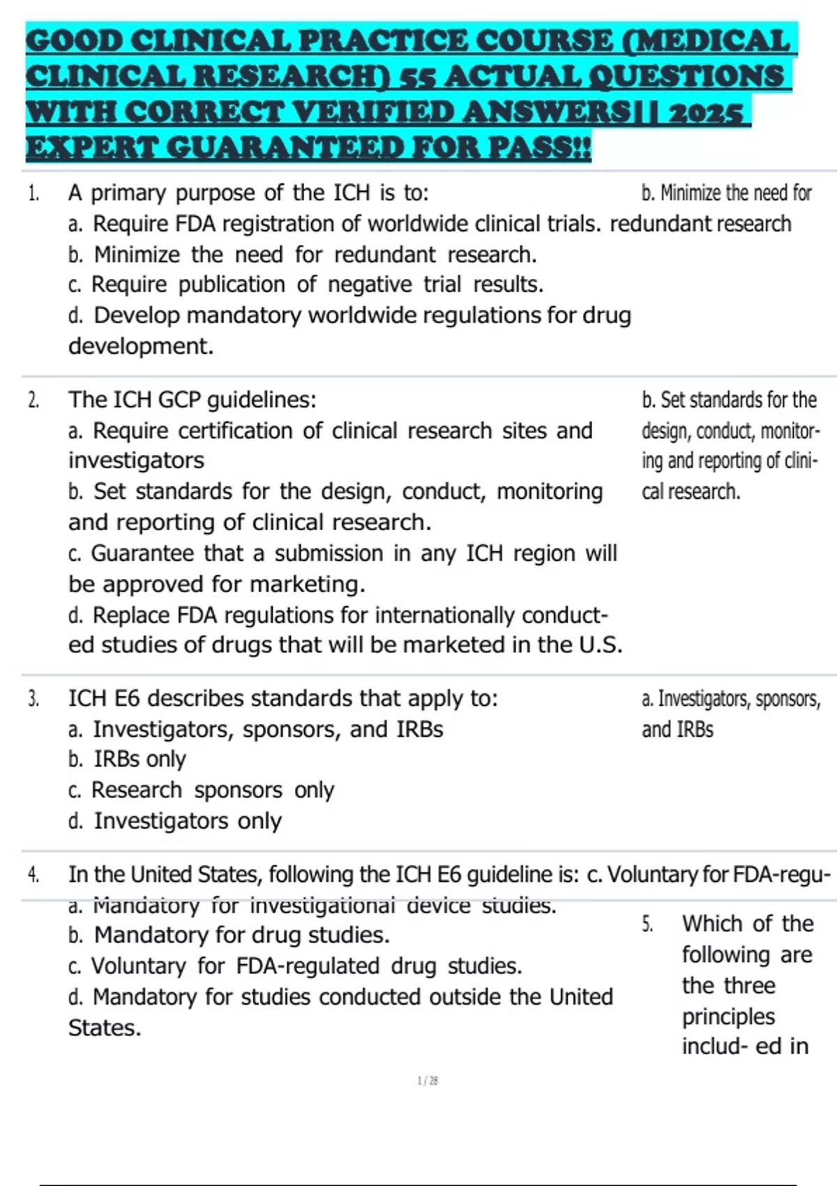 1. A primary purpose of the ICH is to: b. Minimize the need for