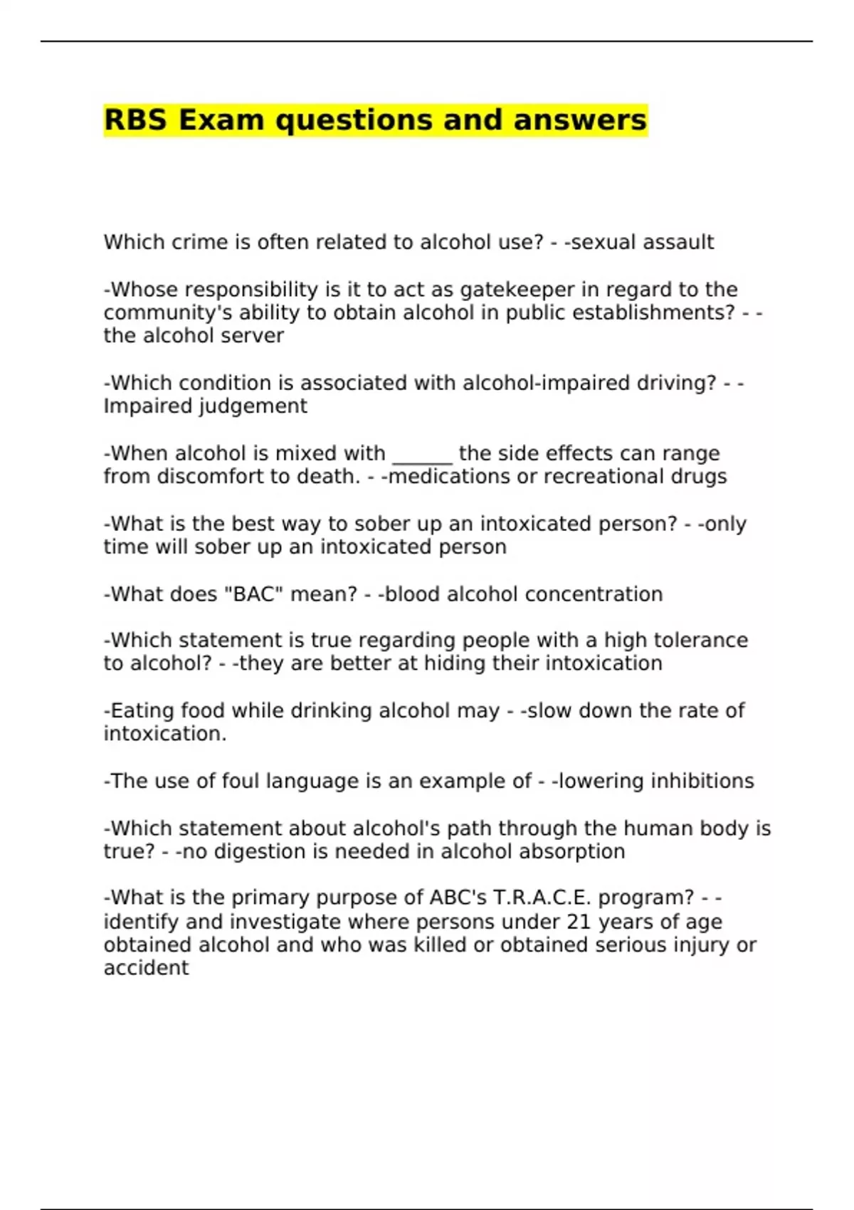 RBS Exam questions and answers