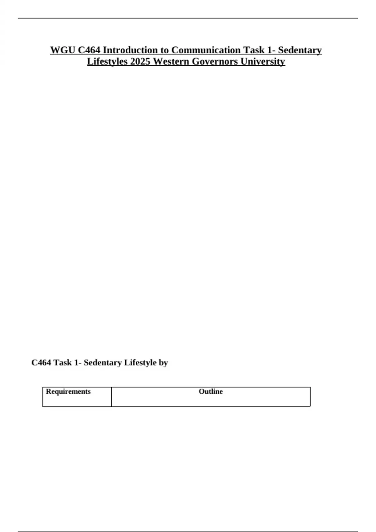 WGU C464 Introduction to Communication Task 1- Sedentary Lifestyles 2025 Western Governors University