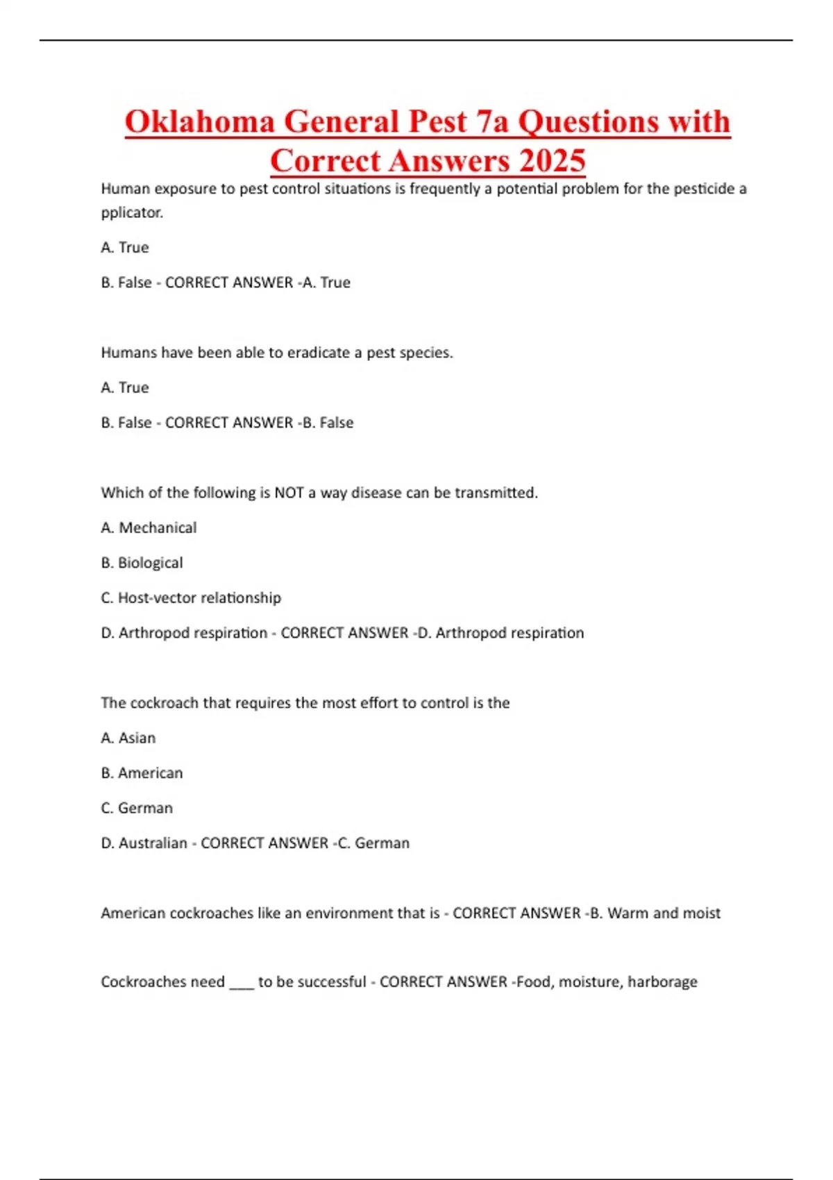 Oklahoma General Pest 7a Questions with