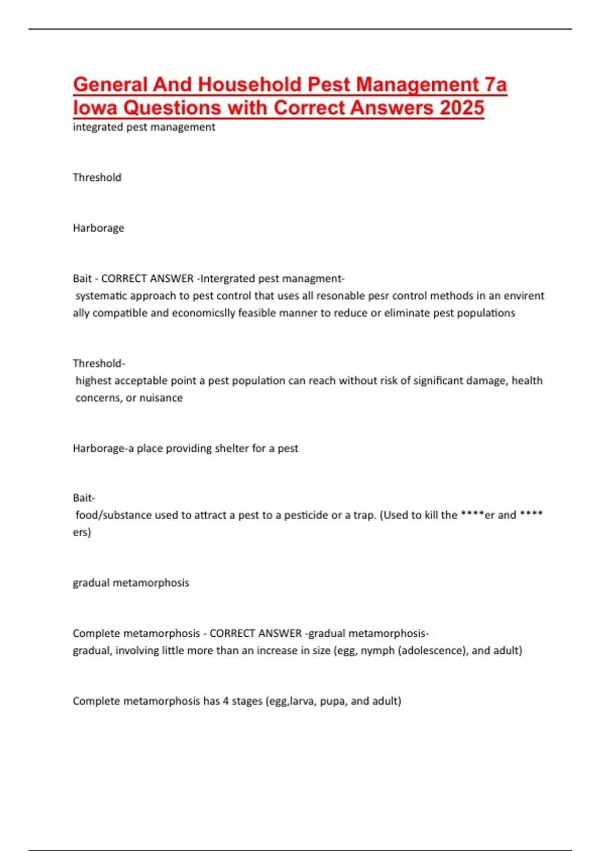 General And Household Pest Management 7a Iowa Questions with Correct Answers 2025