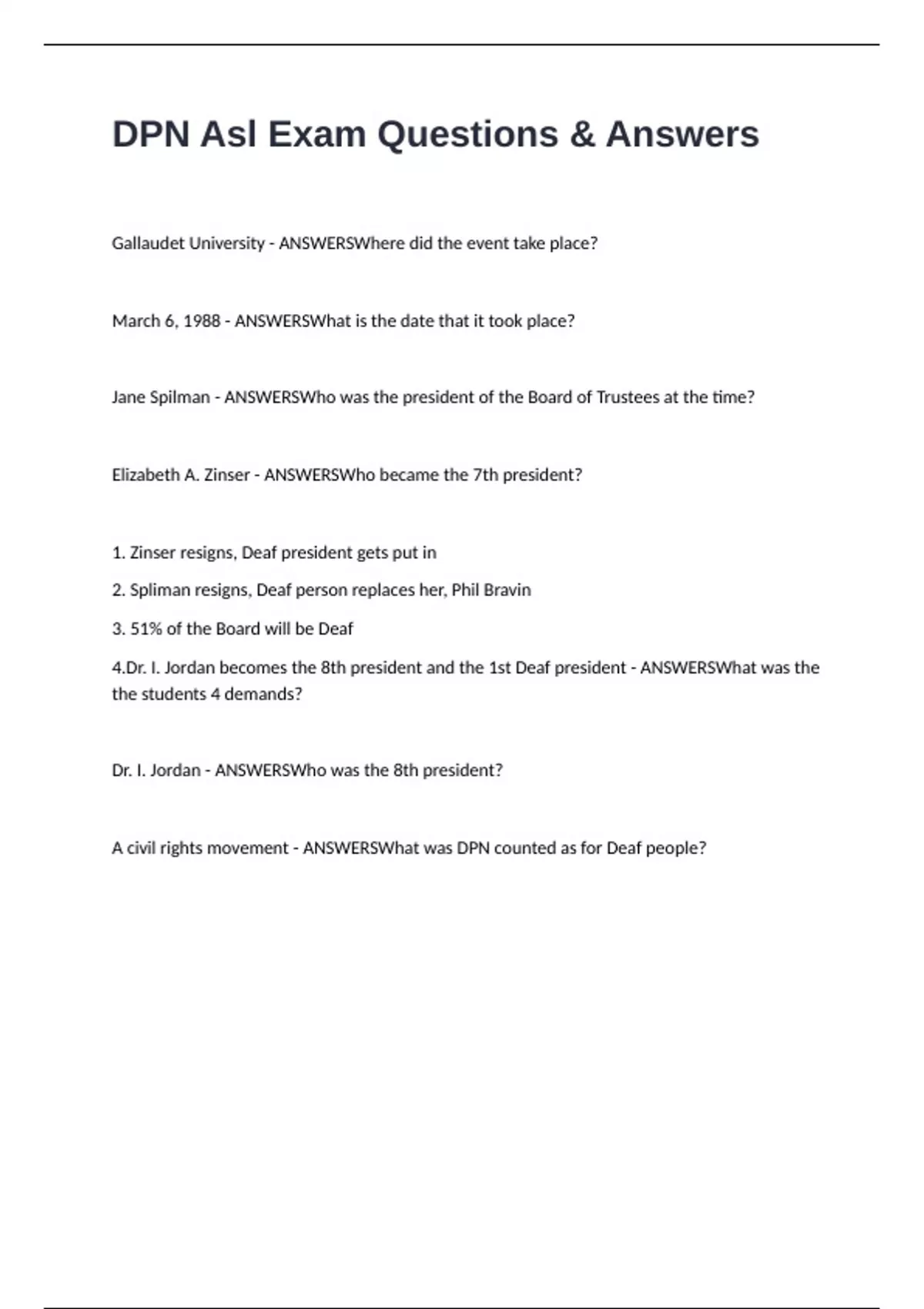 4.Dr. I. Jordan becomes the 8th president and the 1st Deaf president - ANSWERSWhat was the