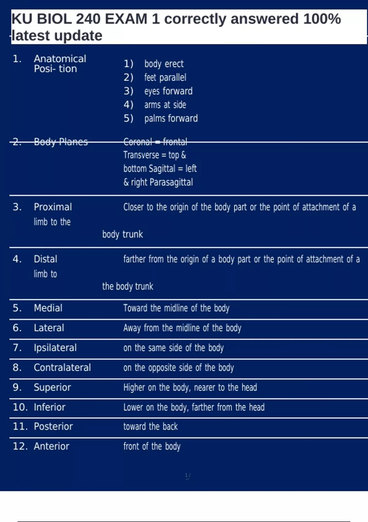 , KU BIOL 240 EXAM 1 correctly answered 100%