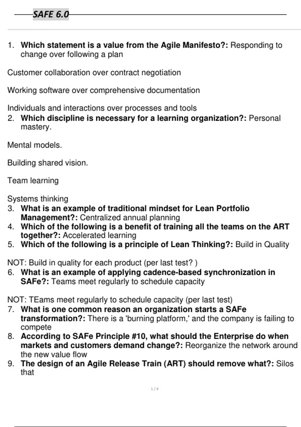 1. Which statement is a value from the Agile Manifesto?: Responding to