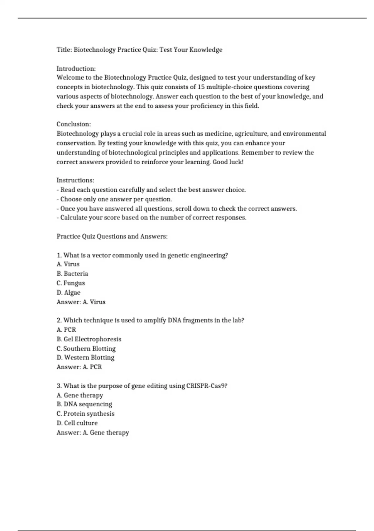 Title: Biotechnology Practice Quiz: Test Your Knowledge
