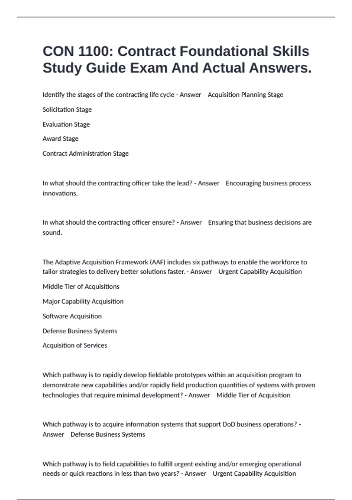 CON 1100: Contract Foundational Skills Study Guide Exam And Actual Answers.
