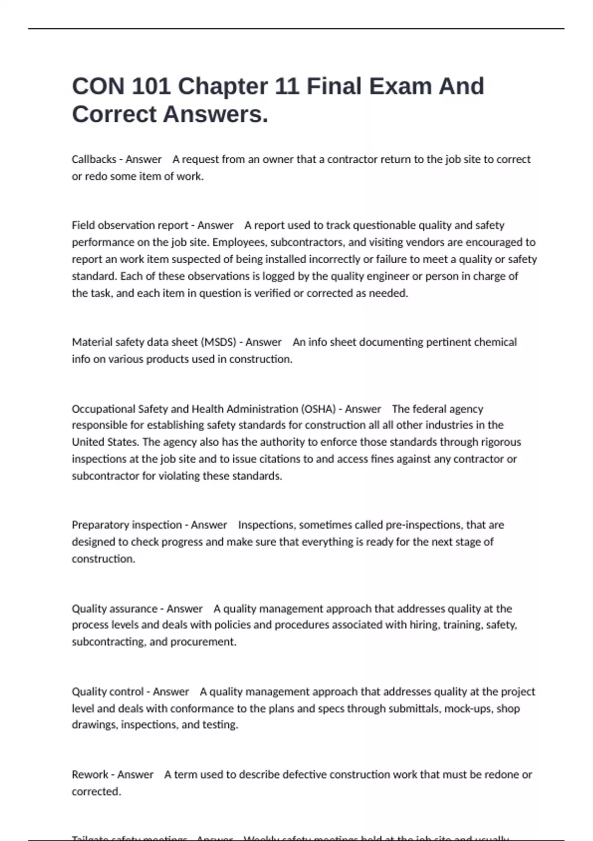 Callbacks - Answer A request from an owner that a contractor return to the job site to correct