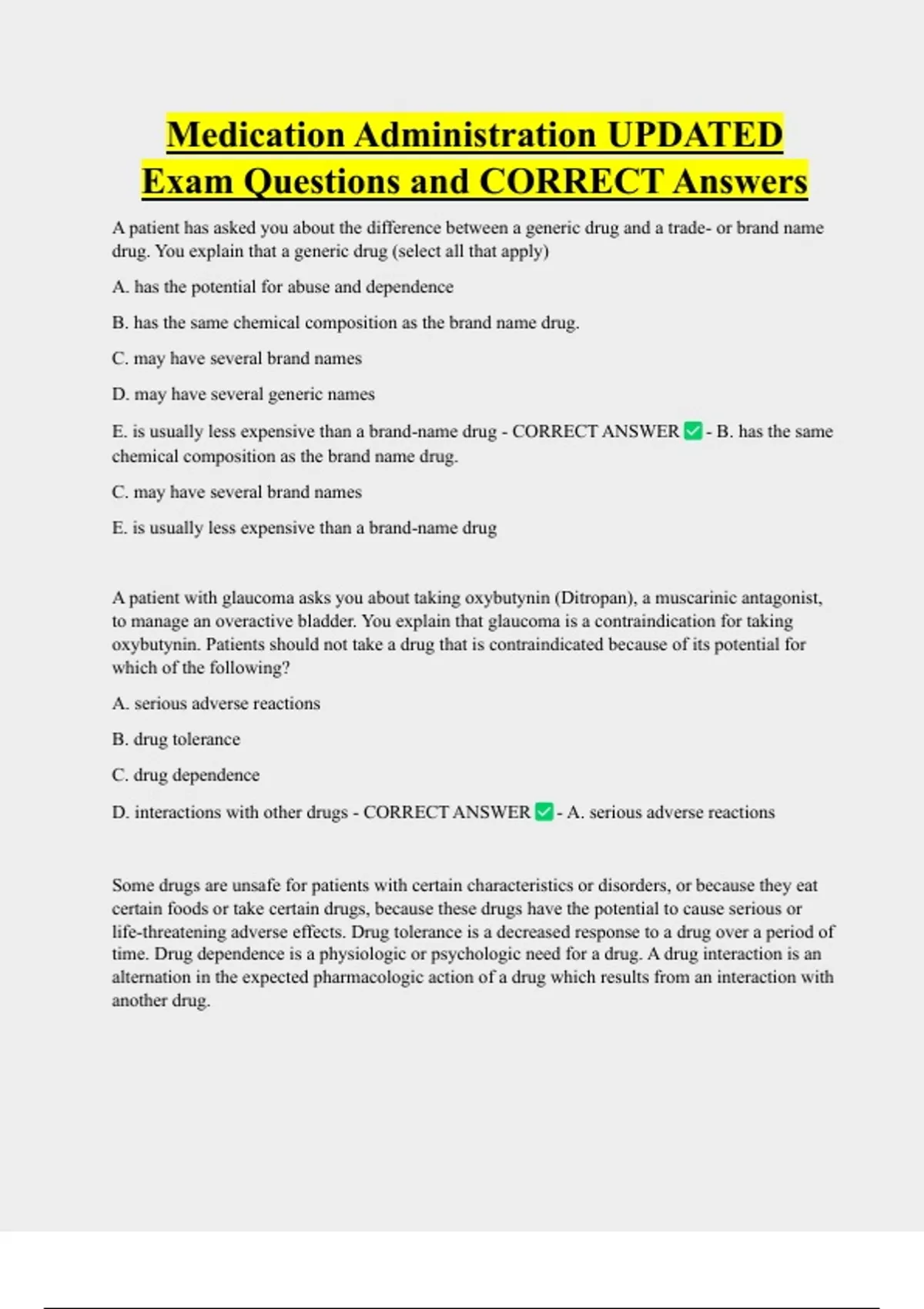 E. is usually less expensive than a brand-name drug - CORRECT ANSWER - B. has the same