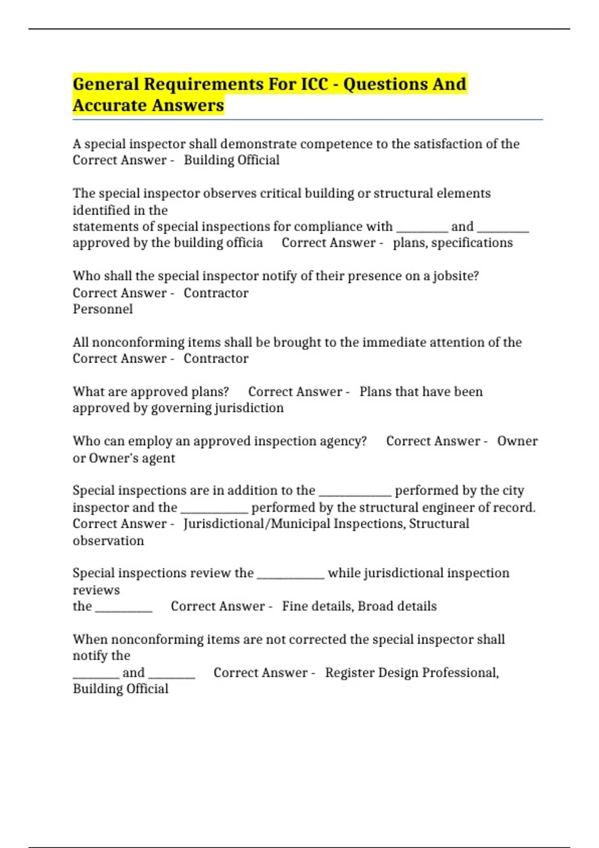 Correct Answer - Jurisdictional/Municipal Inspections, Structural