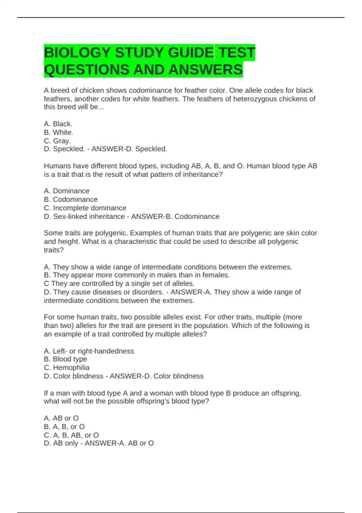 D. Sex-linked inheritance - ANSWER-B. Codominance